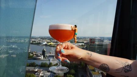 Über den Dächern der Stadt, genauer gesagt direkt an der Reeperbahn 1, befindet sich mit dem clouds ein Hochkaräter, wenn es um Barkultur in ihrer schönsten Form geht. Der Sonnenuntergang über der Stadt kann beispielsweise mit der "Abendröte" - Aperol, Portwein, Zucker und Zitronensaft genossen werden. Auch ansonsten sind die Drinks ziemlich kreativ gestaltet: Sie heißen nämlich genau so, wie die Dinge, die ihr von oben seht – zum Beispiel "Kiez "oder "Uebel&Gefährlich". Wem das nicht reicht, darf sich in der Snack, Wein- und der Schampus-Karte austoben!